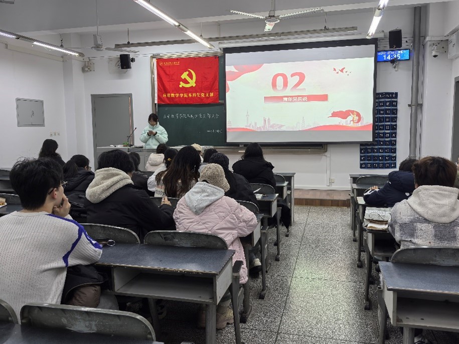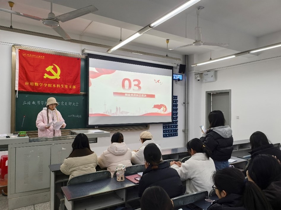 2025年12月8日,应用数学学院本科生党支部在H4302召开支部大会。会议共三个议程:一、专题学习;二、青年党员说;三、预备党员转正。会议由支委曾敏同志主持,本科生党支部党员同志共17人参与此次会议。