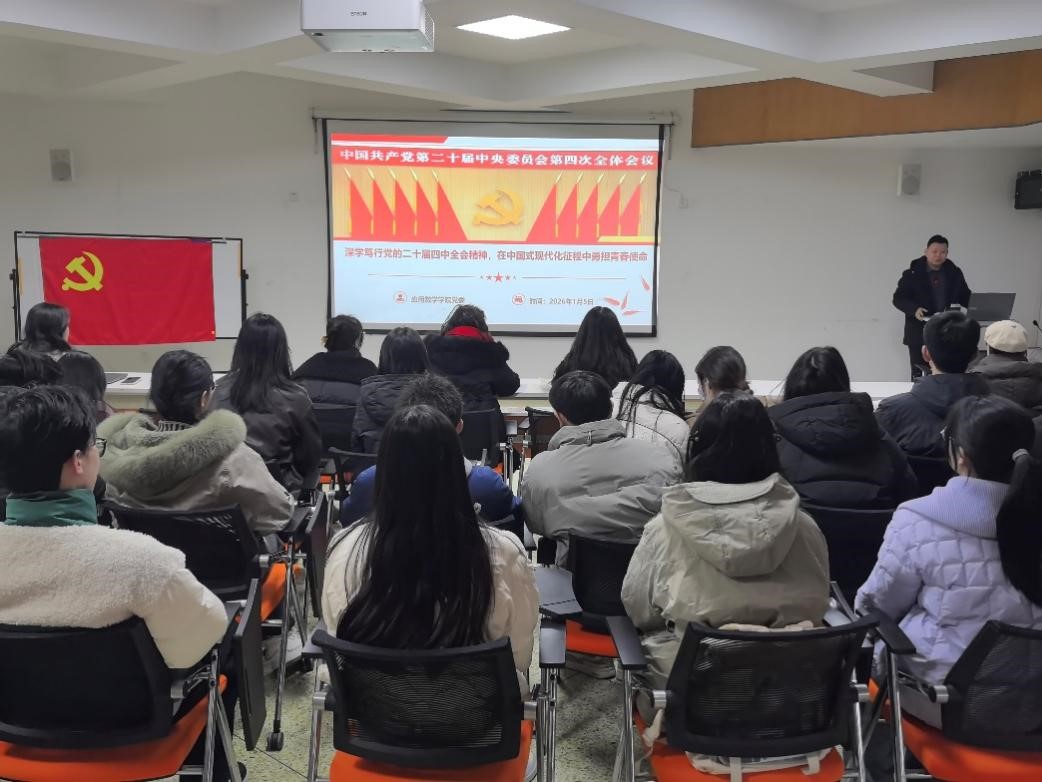 为深入学习贯彻党的二十届四中全会精神,引导大学生党员筑牢思想根基、明确使命担当,2026年1月5日,应用数学学院党委书记林细俤以“深学笃行党的二十届四中全会精神 在中国式现代化征程中勇担青春使命”为主题,为应用数学学院全体学生党员讲授专题党课。