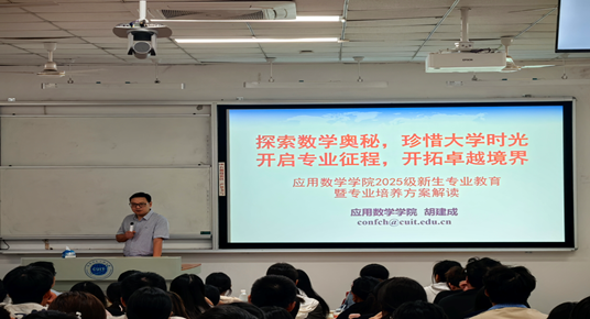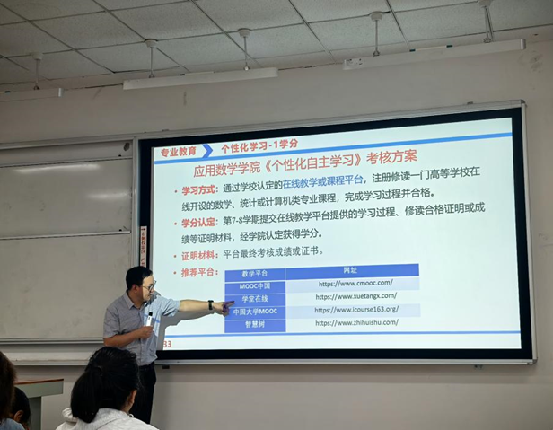 为助力2025级新生锚定专业航向、规划成长路径,9月29日,应用数学学院在2107教室举办专业人才培养讲座。讲座由学院副院长胡建成主讲,全体2025级新生参加。