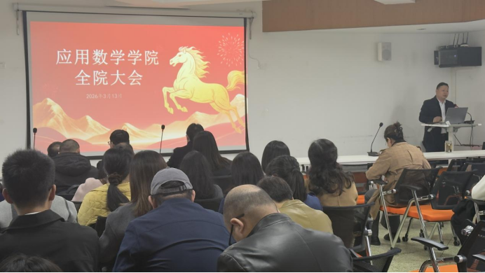 为全面部署新学期各项工作,明确发展方向,凝聚全院教职工奋进力量,3月12日下午,应用数学学院召开新学期全院教职工大会。学院党委书记林细俤主持会议,学院领导班子成员及全体教职工参加会议。
